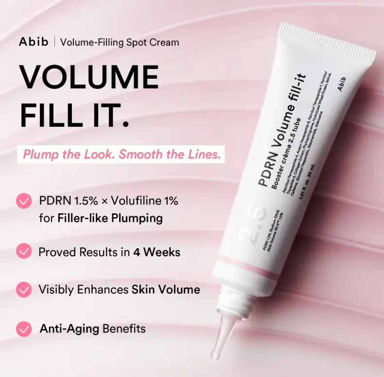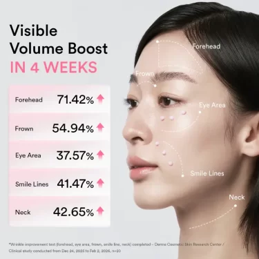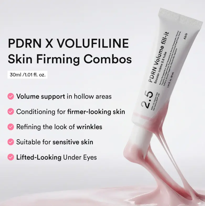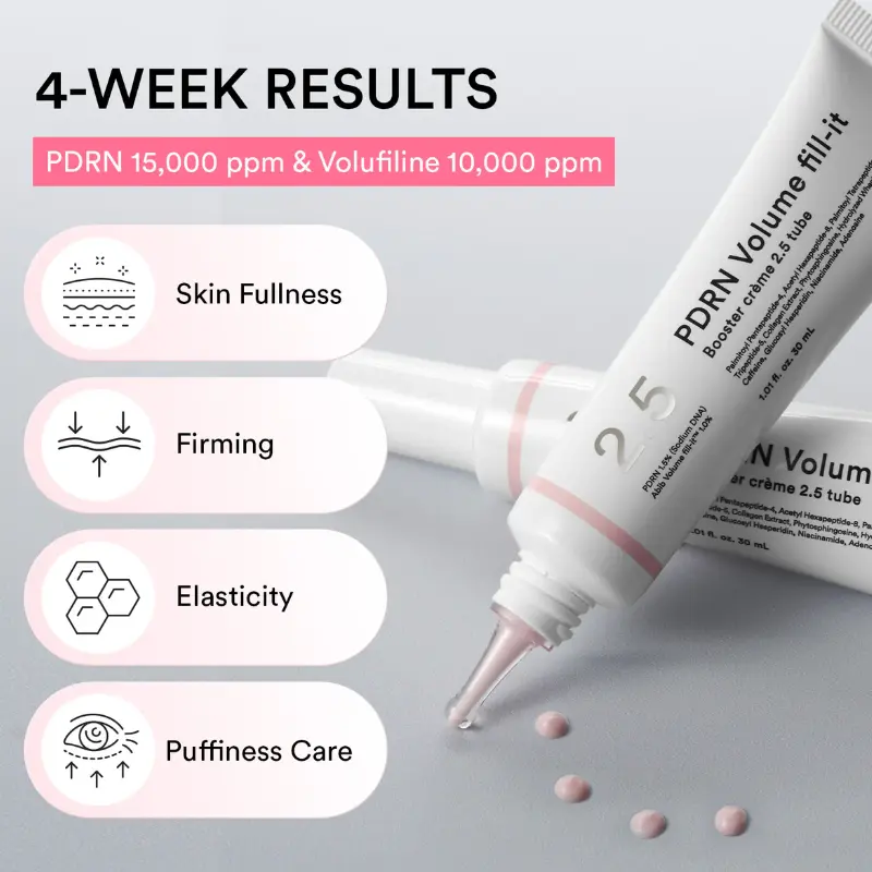 Містить 15 000 ppm PDRN для покращення пружності та еластичності шкіри, а також 10 000 ppm Volufiline для підвищення її насиченості.