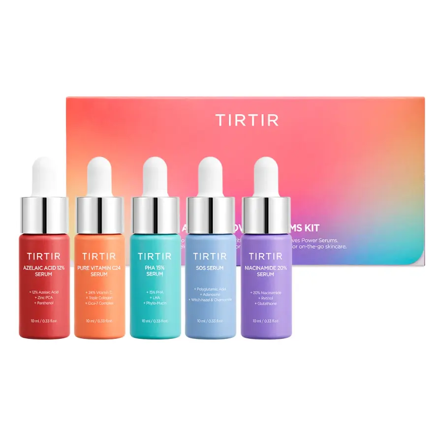 П’ять міні-пляшечок сироватки TIRTIR допомагають від освітлення до догляду за порами.